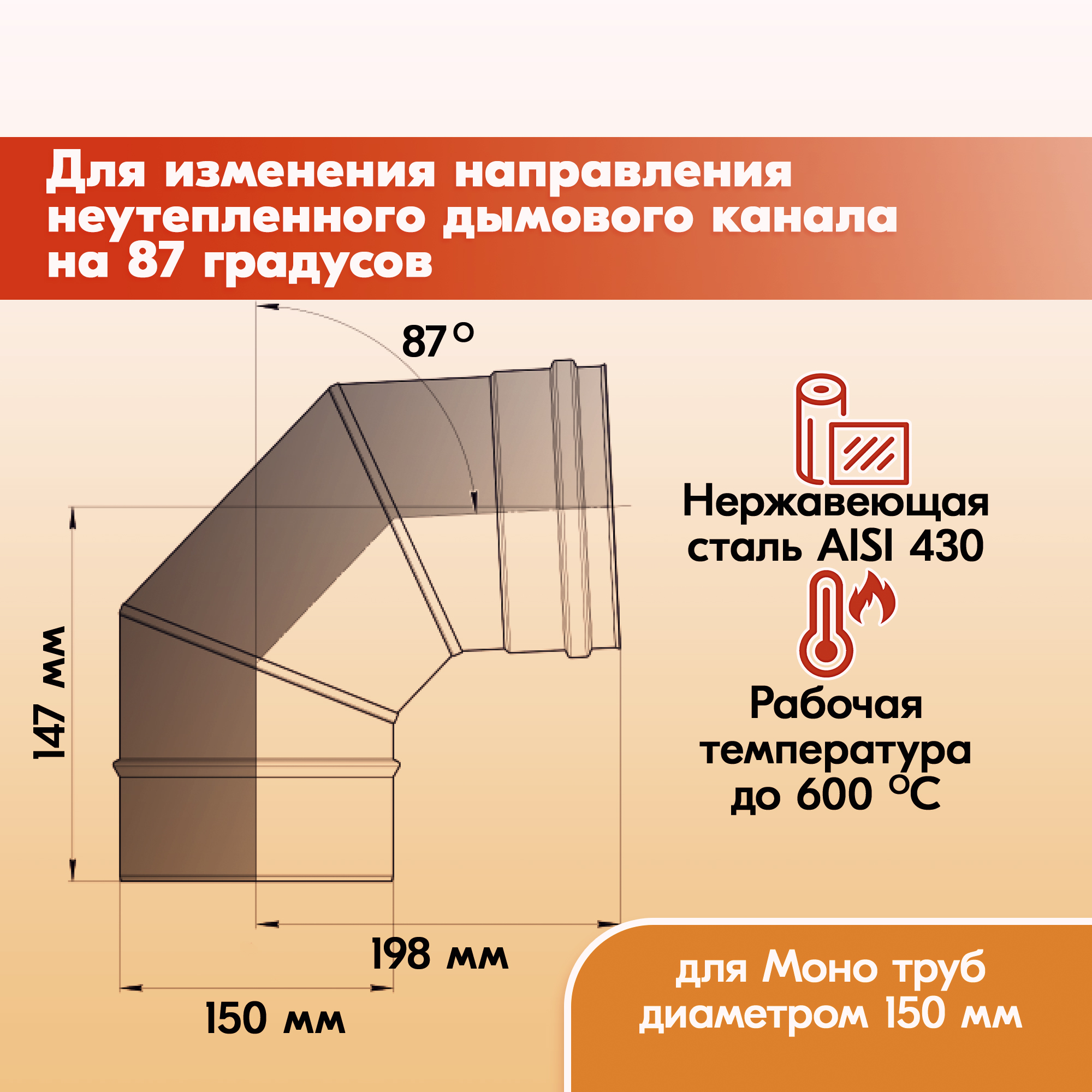 Колено дымохода Моно представляет собой одноконтурные цилиндрические секции из нержавеющей стали, соединенные шовной сваркой.