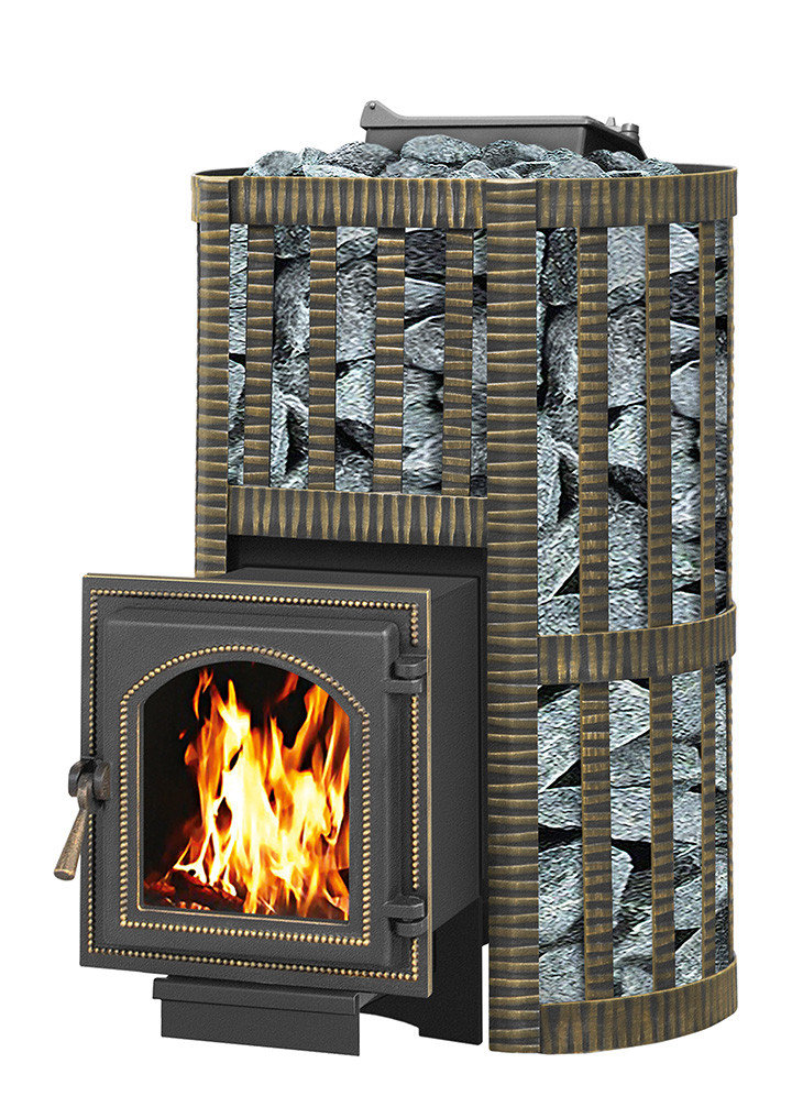 Банная чугунная печь Ураган Ковка 22 (270) укомплектована чугунной герметичной дверцей Везувий 270 с жаропрочным стеклом «SCHOTT ROBAX». Закрытая каменка изготовлена из стали и вмещает в себя не менее 60кг камней.  Конвекционно-вентилируемый кожух "Ковка" изготовлен из металлической текстурированной полосы покрашенной термостойкой краской и покрытая патиной «Бронза».