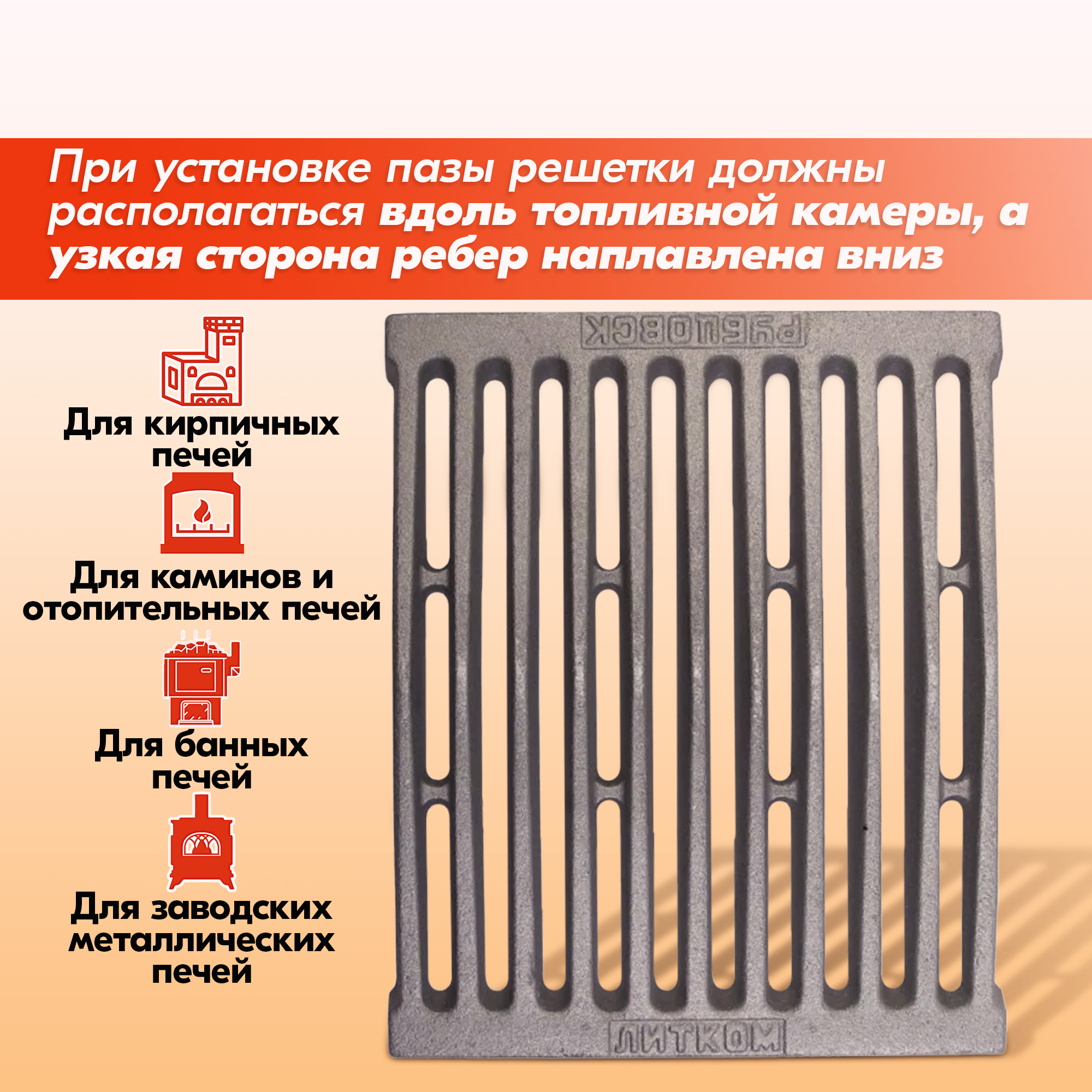 Решетки колосниковые для печи Рубцовского завода ЛИТКОМ производятся из чугуна, который отличается прочностью и долговечностью.