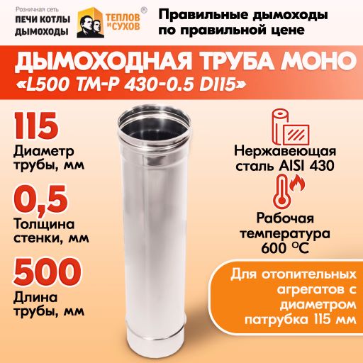 Трубы для дымохода из нержавейки Труба L500 ТМ-Р 430-0.5 D115 правильный дымоход Теплов и Сухов из нержавеющей стали для котла и печи